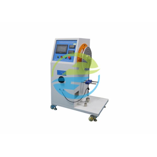 The test device is easy to operate, can preset the number of test times (up to 999999 times), the test speed and test angle can be adjusted, load current 0-1A stepless adjustable, and with the current conduction detection function. Tester will stop automatically when preset test times completed or detected conduction interrupt, record the tested times and alarm with sound. The equipment is manufactured according to the standard and the sample fixture matches the multiple samples. The utility model has the advantages of beautiful appearance, strong function and high reliability, and is an indispensable equipment for cable manufacturers and laboratory testing.